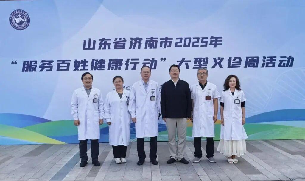 按照国家、山东省和济南市卫生健康委有关部署安排,近日,2025年“服务百姓健康行动”大型义诊活动在市中区百旺广场举行。齐鲁医院副院长刘新宇、医务处处长任洪波带队,呼吸与危重症医学科主任医师郭海鹏、内分泌与代谢病科副主任医师刘福强、小儿内科副主任医师李萌、药剂科副主任药师相妍笑参加活动,为人民群众健康保驾护航。